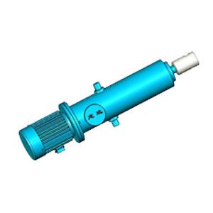 附圖說(shuō)明圖1是本實(shí)用新型的兩視圖。圖2是本實(shí)用新型的一個(gè)具體實(shí)施例圖。 圖3是電液推桿的液壓控制原理圖。溢流閥和單向閥、調(diào)速閥都集成在一個(gè)集成塊中。液壓源由電機(jī)11,聯(lián)軸器,泵機(jī)座,油泵和集成塊組成,在殼體內(nèi)裝有液壓油。